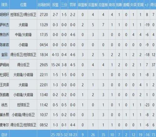 广东队数据如下: