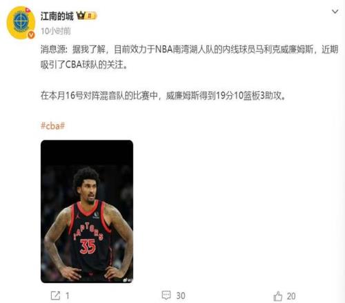 据了解,广东宏远正在接触来自NBA发展联盟南湾湖人队的内线,马利克-威廉姆斯。当然,也还有其他的CBA俱乐部和广东宏远竞争这位内线球员。