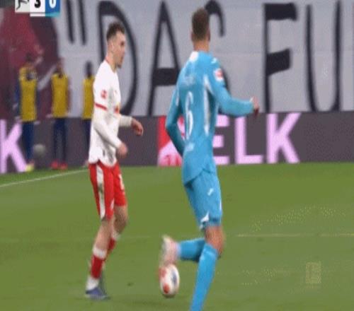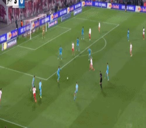 第30分钟,格鲁达斜传至禁区,鲍姆加特纳停球射门一气呵成,莱比锡3-0