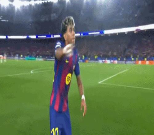 第45+7分钟,有设计,亚马尔点球破门后上演了一段跳舞庆祝