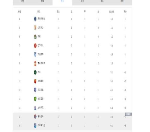 山东泰山同样收获两连胜,共赢4个净胜球,但由于赛季开始前被扣6分,暂时以0分排在积分榜第5。两队在比赛中均展现出强大的竞争力。