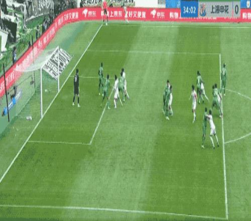 第35分钟,申花开出角球,朱辰杰头球摆渡,拉唐跑过了,错失良机。