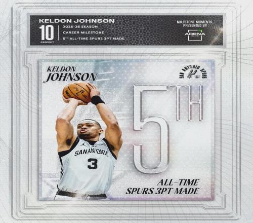 马刺这边,也有球员实现里程碑:凯尔登-约翰逊马刺生涯三分命中数达到662记,超越鲍文升至队史第五。马刺队史三分命中数前四名分别是:吉诺比利(1495)、帕蒂-米尔斯(1171)、丹尼-格林(959)、瓦塞尔(755)。