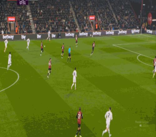 本场比赛,一周一赛的曼联没有改变首发阵容和思路,伯恩茅斯这边也是一样,仅在个别位置进行了细微的调整,整体思路并不会发生根本性的变化,所以开场一上来,伯恩茅斯的逼抢就来了: