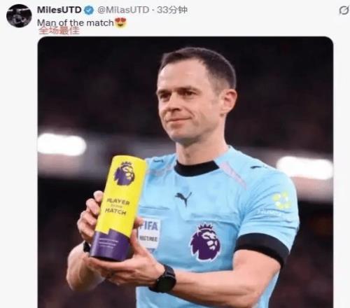 赛后,曼联球迷彻底炸锅。大量球迷涌向英超官方社媒评论区刷屏:“本场最佳是主裁!”“建议查查裁判是不是被收买了!”“光天化日抢劫曼联!”“同样的动作,判罚天差地别,这还怎么信VAR?”