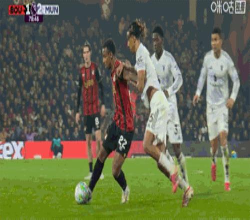 更糟糕的是,在曼联没有回过神的时候,伯恩茅斯得球后趁机发动反击,瑞恩·克里斯蒂禁区边缘的精准射门,让拉门斯无可奈何,伯恩茅斯1-1扳平,这是该队三场比赛以来的第一粒进球。